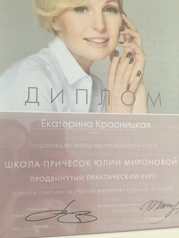 Давно задумываетесь о том,чтобы попробовать новые техники сложных окрашиваний? Хотите сделать сложную стрижку,но не можете найти правильного специалиста? А может быть мечтаете о кардинальной смене образа из брюнетки в блондинку?Тогда Вы точно по адресу! Екатерина обладает всеми навыками для того,чтобы добиться успеха в любой поставленной перед ней задаче! В её арсенале стрижки и окрашивания любой сложности,вплоть до исправления чужих ошибок!!!Изюминка на торте-её фирменные рецепты и советы по уходу за волосами,ведь нет красоты волос без их здоровья! Спешите записаться и проверить;количество мест ограничено!